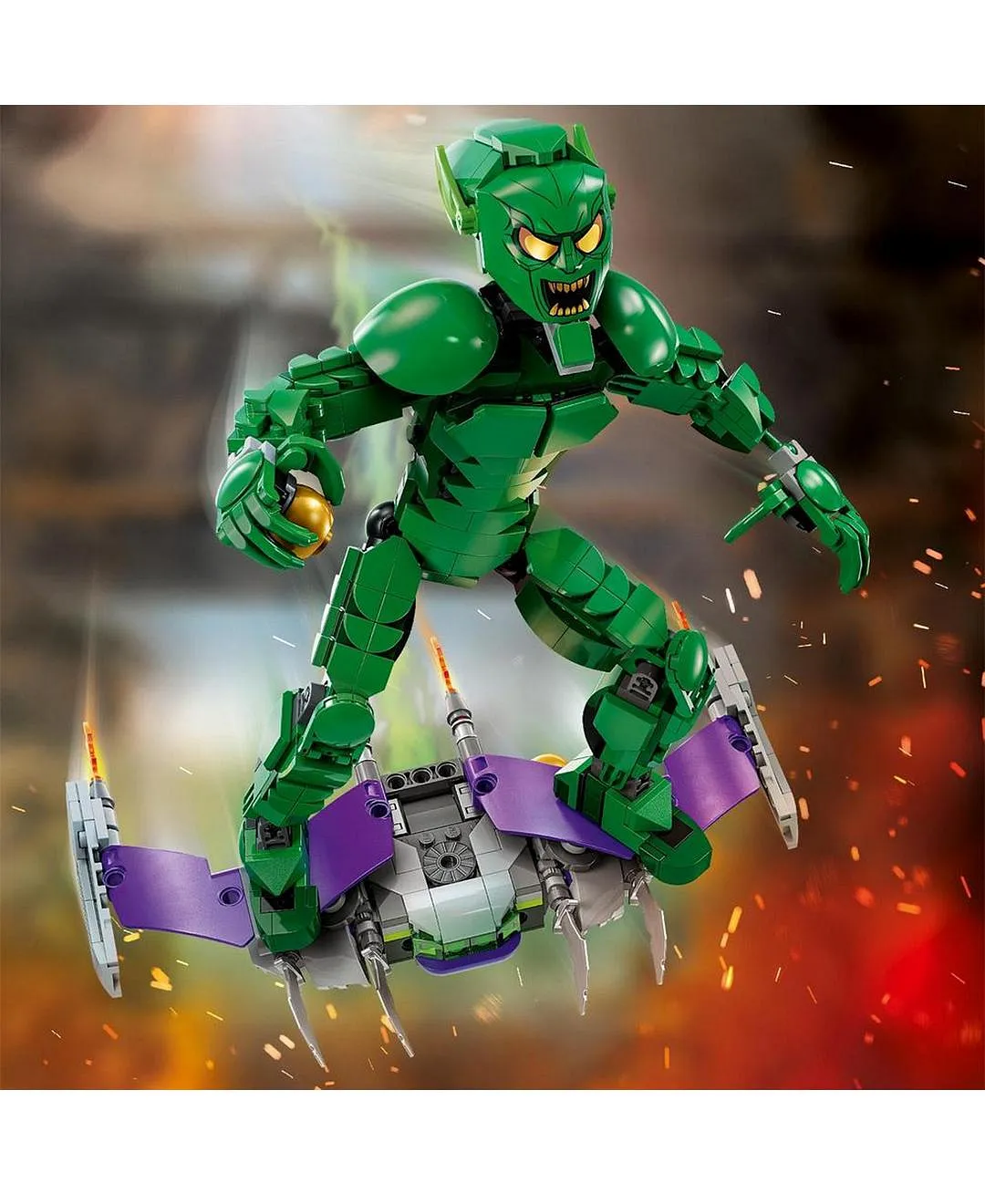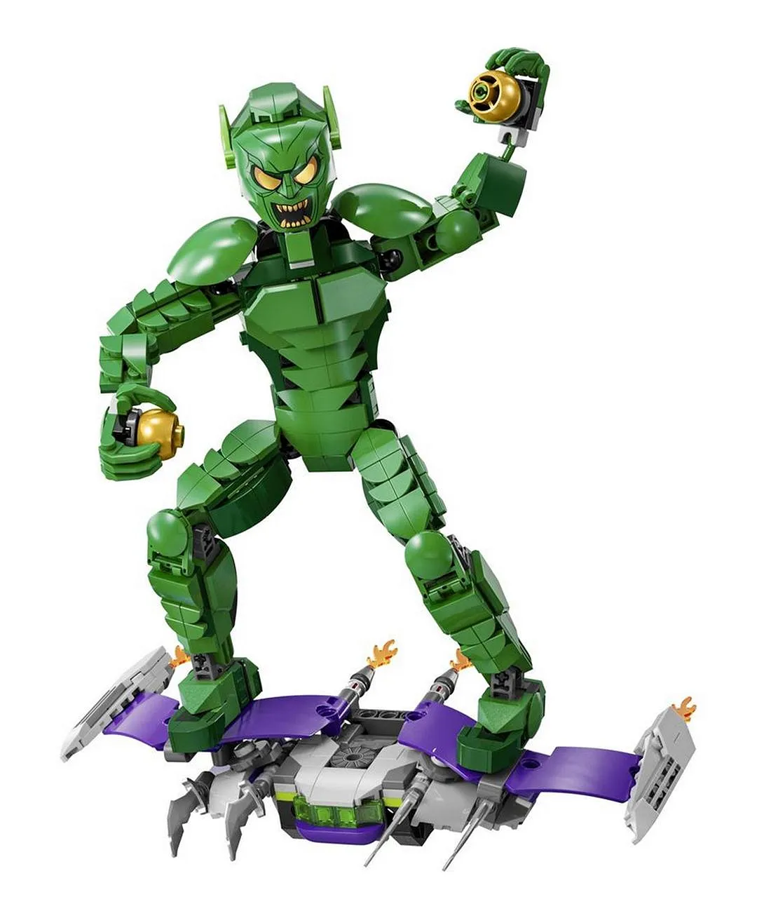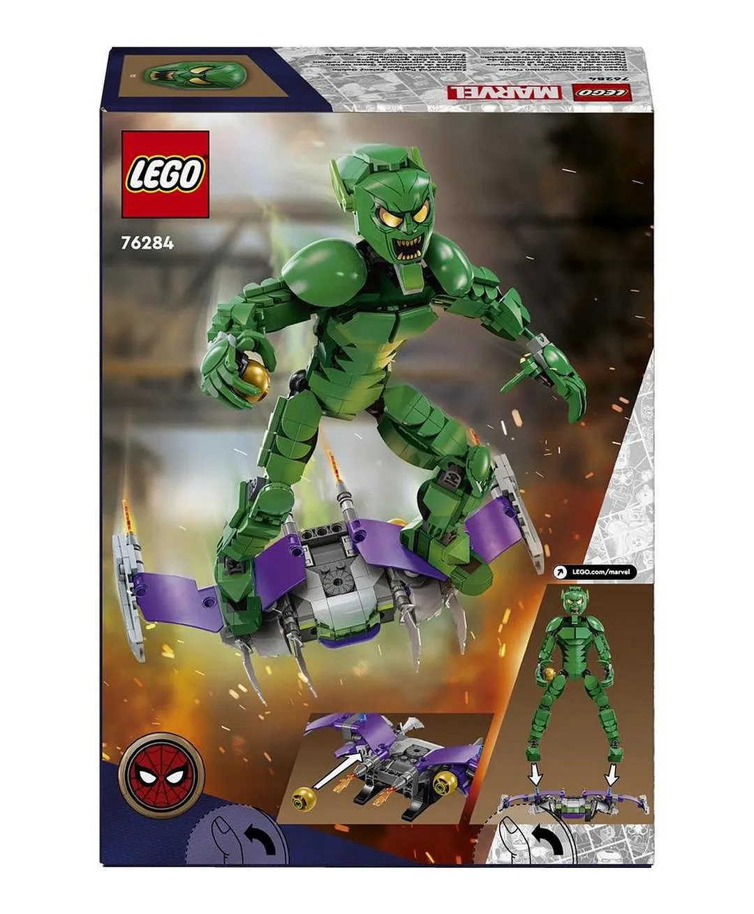 لعبة البناء القابلة للتجميع لشرير Marvel هي لعبة ممتعة، إذ يمكن للأبطال الخارقين الصغار بناءها واللعب بها وعرضها. تسمح مفاصل الكتف والذراع والورك والساق القابلة للتحريك للأطفال بابتكار أوضاع تشويق رائعة أثناء تنفيذهم لمهام مشوّقة. يتوفّر غرين غوبلن المليء بالتفاصيل الأصلية مزوّدًا بقنبلتَيْ اليقطين وطائرته الشراعية الشهيرة. ويمكن وضع القنبلتين في يد الشخصية وفي مساحة التخزين في الجزء الخلفي من الطائرة الشراعية. تعتبر مثالية للعب الأدوار المستقل. لمزيد من المرح الرقمي، يمكن للبناة تكبير المجموعات وتدويرها في وضع ثلاثي الأبعاد وتتبع مستوى تقدّمهم باستخدام تطبيق LEGO Builder الممتع والحدسي.