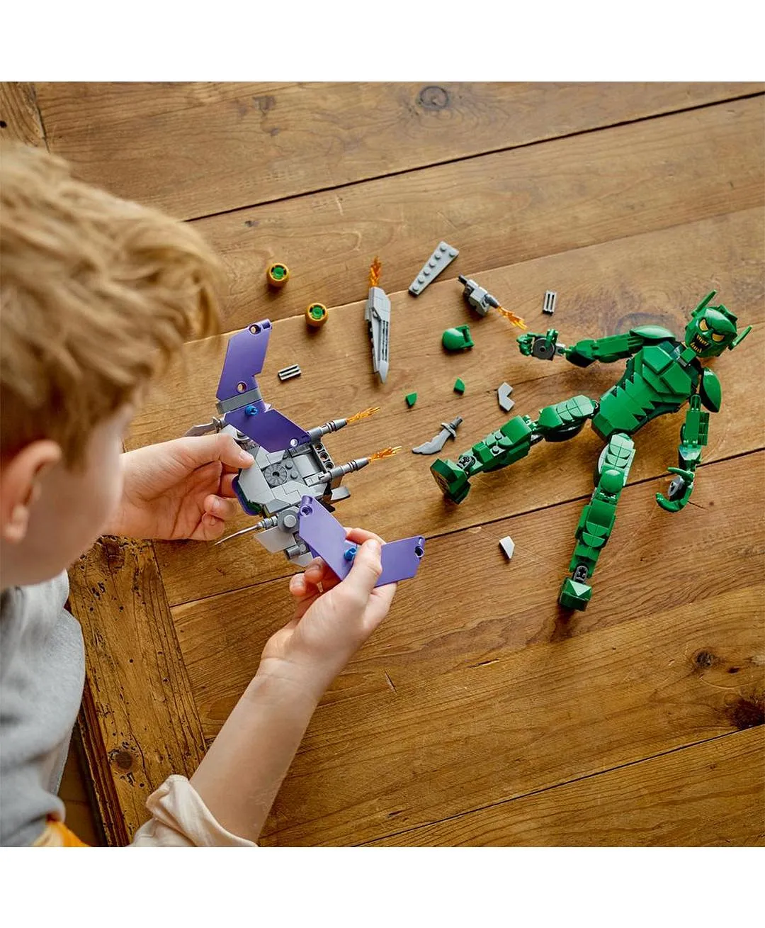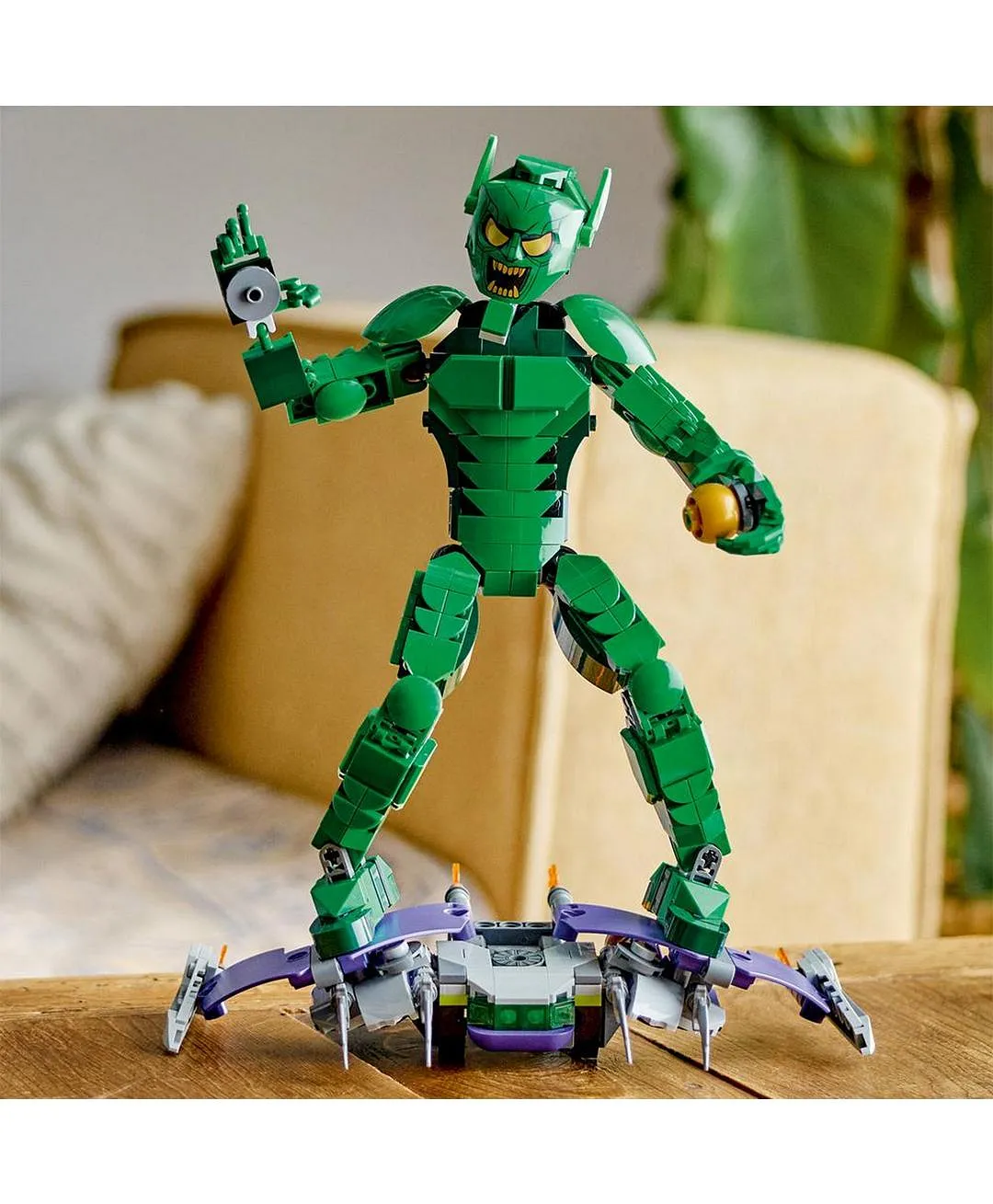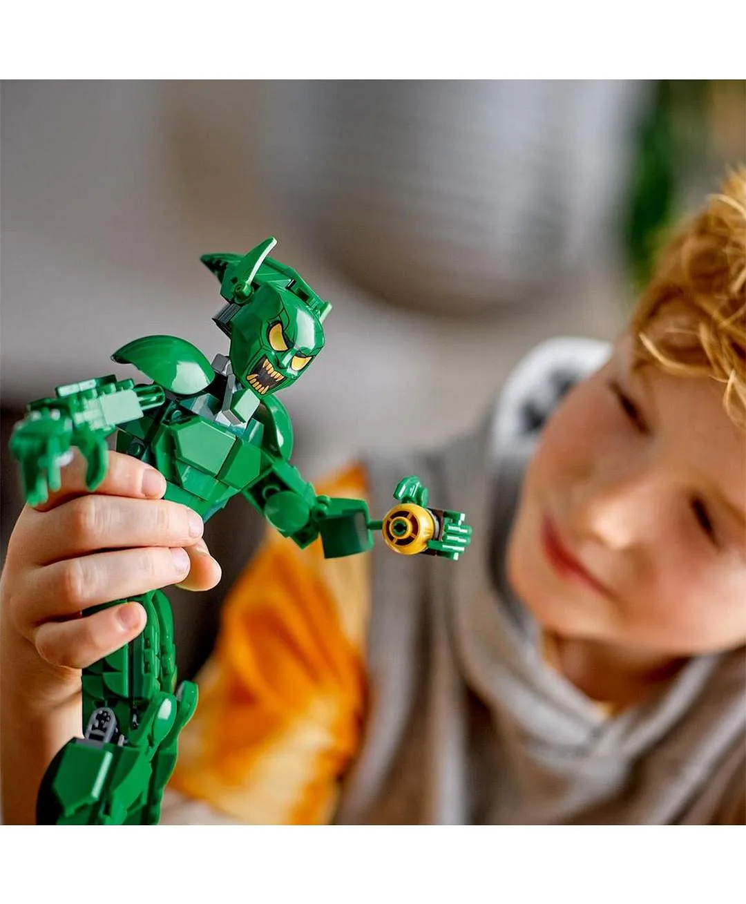 لعبة البناء القابلة للتجميع لشرير Marvel هي لعبة ممتعة، إذ يمكن للأبطال الخارقين الصغار بناءها واللعب بها وعرضها. تسمح مفاصل الكتف والذراع والورك والساق القابلة للتحريك للأطفال بابتكار أوضاع تشويق رائعة أثناء تنفيذهم لمهام مشوّقة. يتوفّر غرين غوبلن المليء بالتفاصيل الأصلية مزوّدًا بقنبلتَيْ اليقطين وطائرته الشراعية الشهيرة. ويمكن وضع القنبلتين في يد الشخصية وفي مساحة التخزين في الجزء الخلفي من الطائرة الشراعية. تعتبر مثالية للعب الأدوار المستقل. لمزيد من المرح الرقمي، يمكن للبناة تكبير المجموعات وتدويرها في وضع ثلاثي الأبعاد وتتبع مستوى تقدّمهم باستخدام تطبيق LEGO Builder الممتع والحدسي.