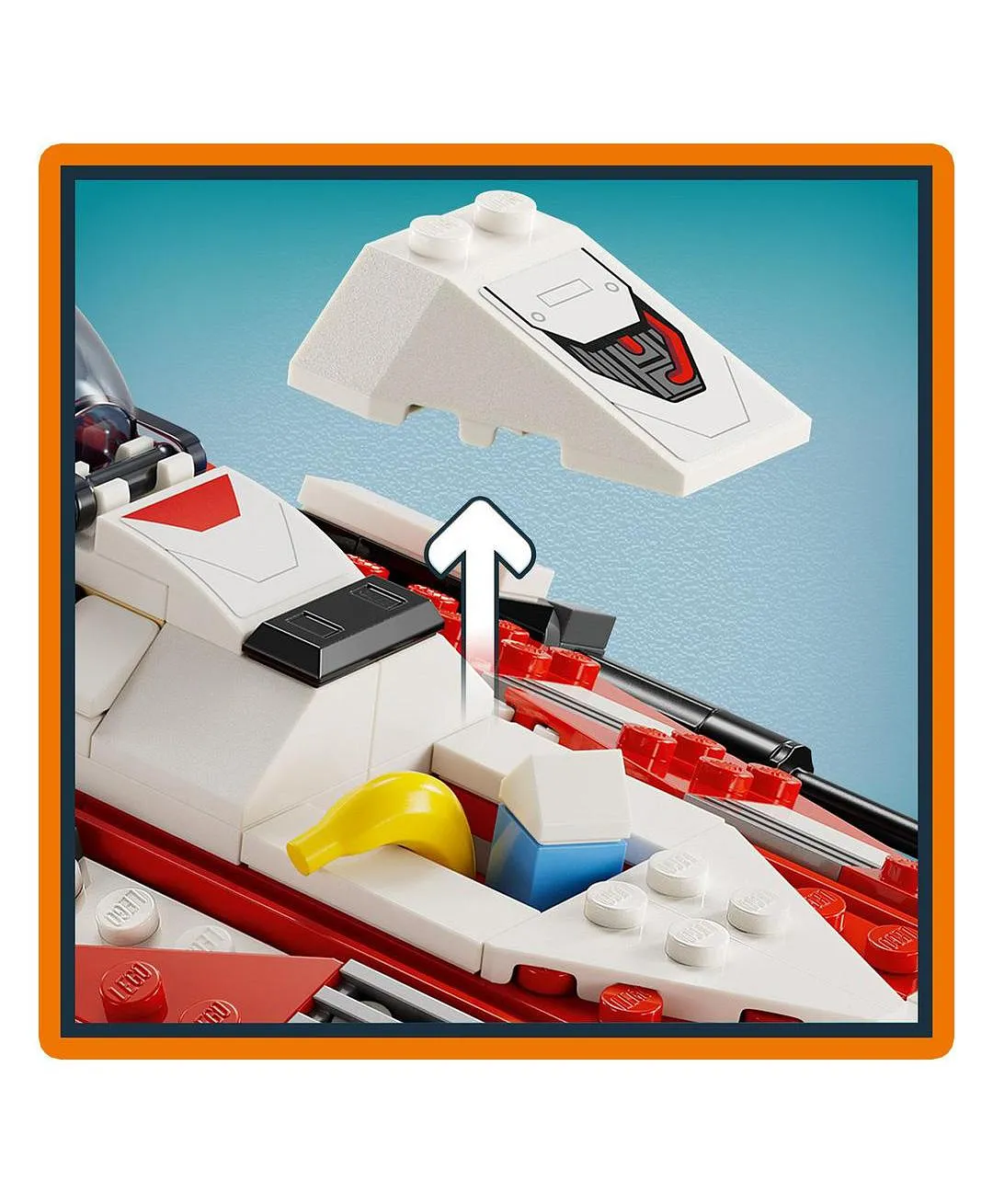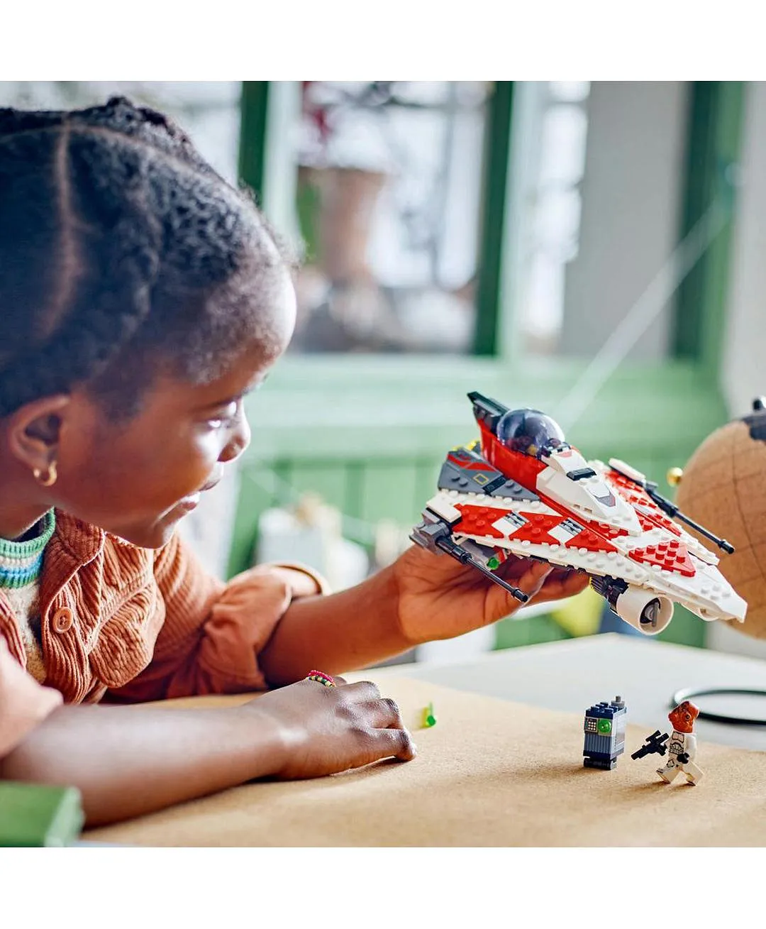 مقاتلة الجيداي من Star Wars™‍‌‎ – تضم لعبة مركبة الفضاء المبنية من مكعبات ليغو®‍‌‎ قمرة قيادة قابلة للفتح مع حجرة تخزين، و2 من القاذفات المحمّلة بنابض، ومشابك لتعليق السيوف المضيئة وعجلة هبوط قابلة للسحب.