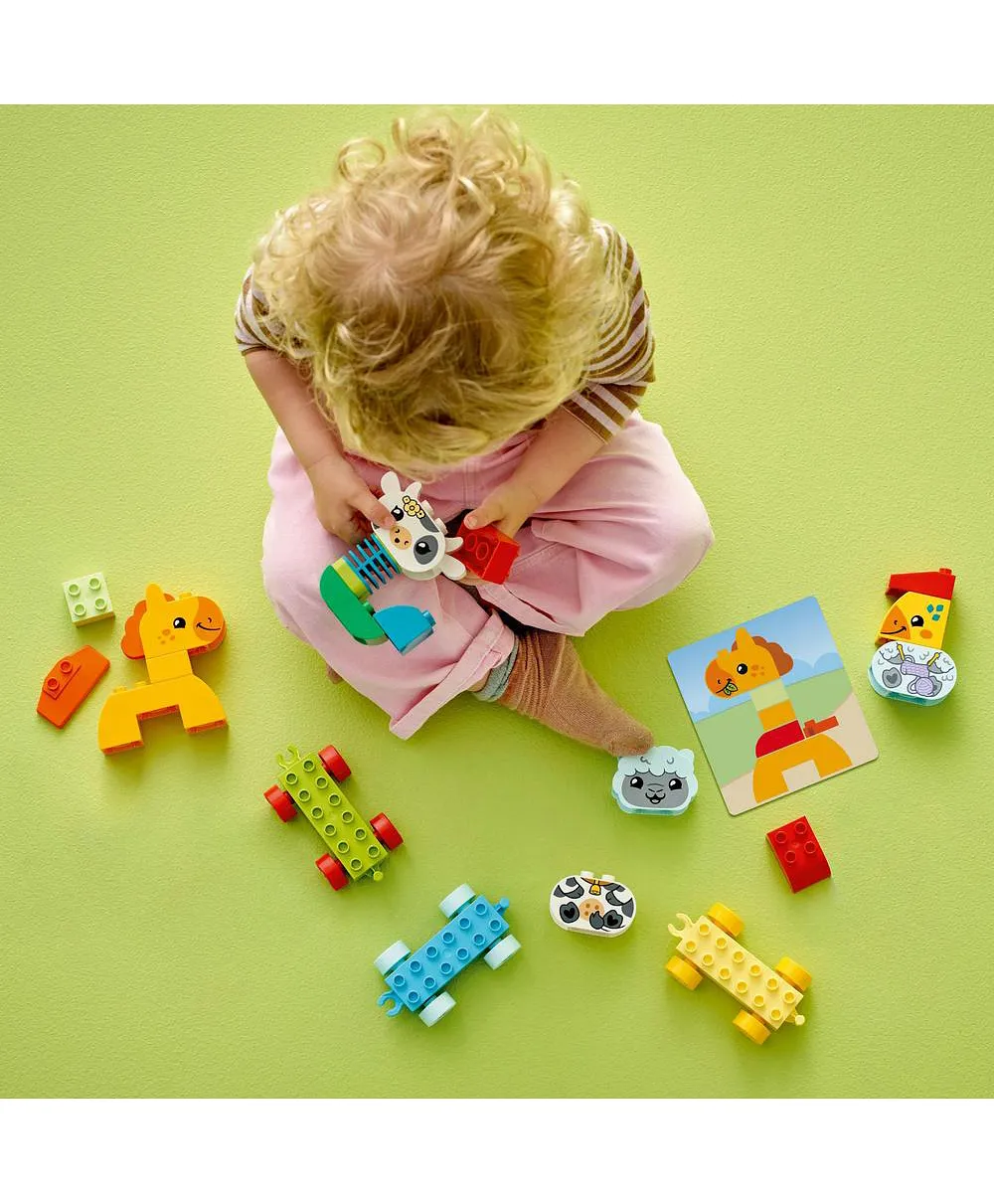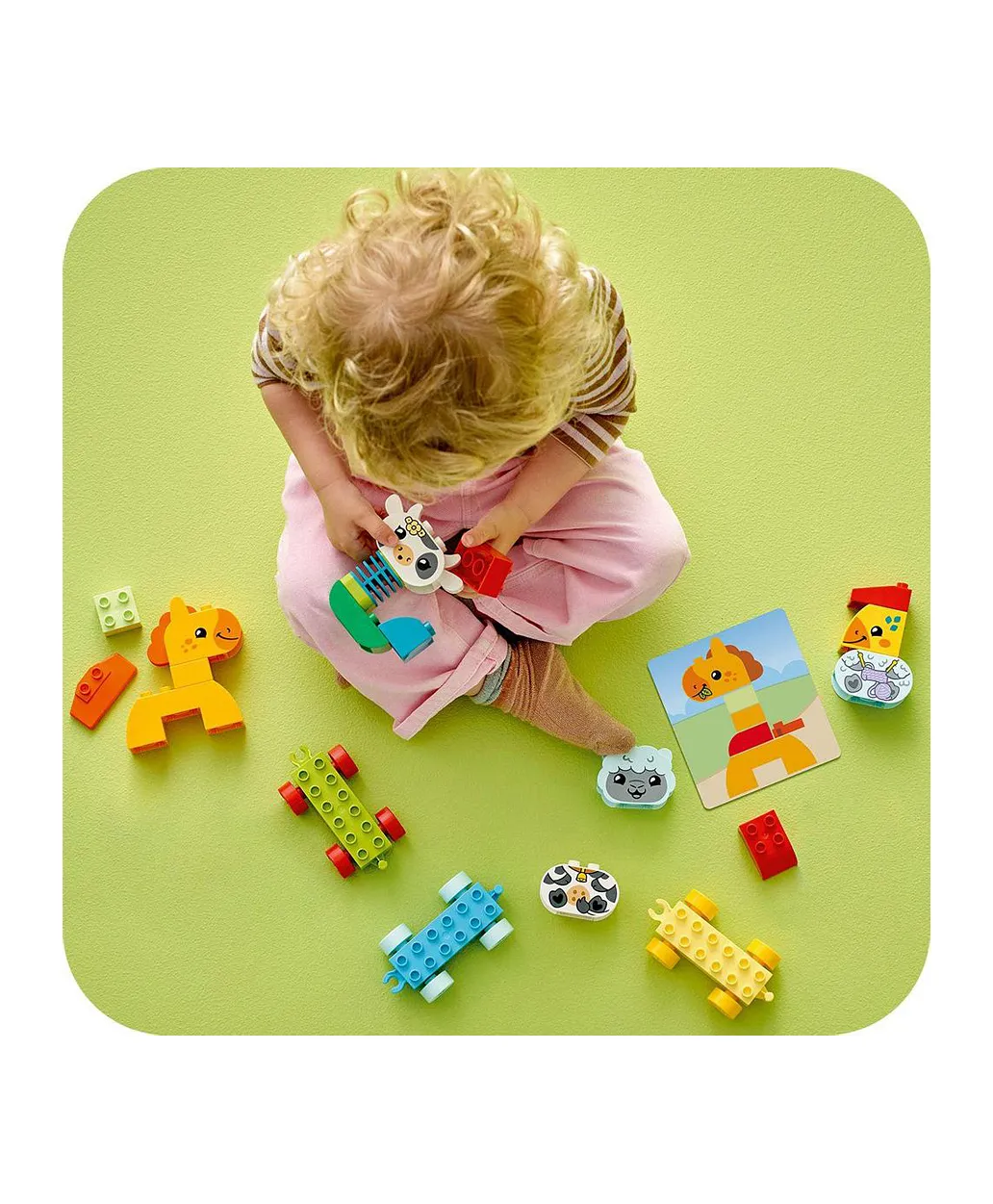 لعبة مركبة الحيوانات – تضم مجموعة قطار الحيوانات هذه من LEGO® DUPLO® My First للأطفال بعمر 18 شهرًا أو أكثر، 4 حيوانات قابلة للبناء و3 عربات للجرّ قابلة للفصل للعب الأدوار الإبداعي