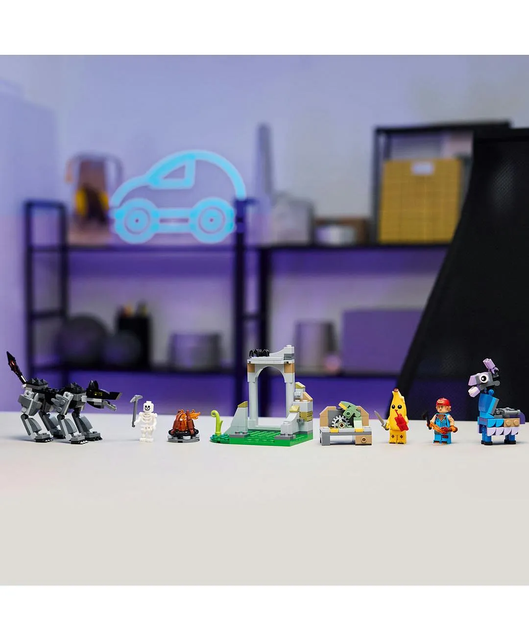 تحاكي مجموعة اللعب التحديات الأولى التي يواجهها اللاعبون في لعبة الفيديو ليغو فورتنايت Odyssey، وسيستمتع الصبيان والبنات ببناء نار المخيم وطاولة العمل والأطلال التي يمكن تفكيكها وإعادة تكوينها. وتضم المجموعة أيضًا شخصية لاما الإمدادات ونموذج ذئب مع ذيل وساقين متحركين. ويتجسد التشويق في الواقع من خلال الشخصيات الصغيرة لبيلي وشمعة الإشعال وهيكل عظمي، الذي يتوفر بملحقات أسلحة لتشجيع لعب الأدوار التخيلي.
