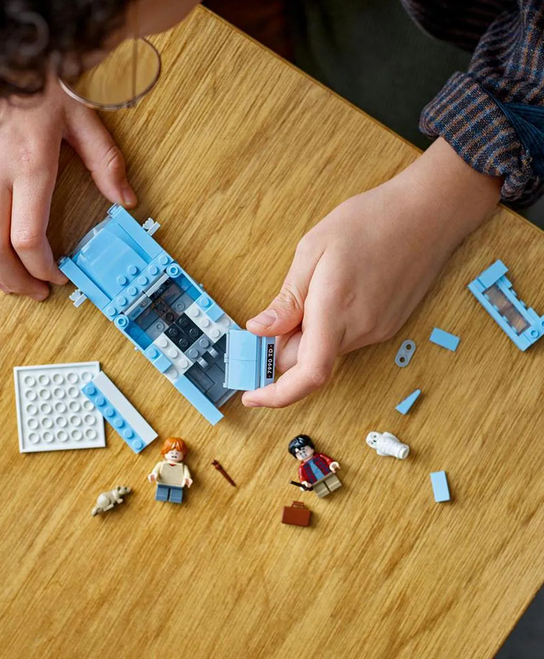 أعد إنشاء رحلة هاري بوتر ورون ويزلي المثيرة إلى هوجوورتس في سيارة فورد أنجليا الطائرة (76424) مع هذه المجموعة اللّعب الخيالية للأطفال من عمر 7 سنوات فما فوق. تتميز سيارة المغامرات المصنوعة من مكعبات ليغو بأبواب قابلة للفتح وسقف قابل للإزالة مما يسهل وضع شخصيات هاري بوتر ورون ويزلي وورقة البومة هيدويج داخلها. هناك أيضًا مساحة في صندوق السيارة لحقيبة السفر وعصا هاري ورون والفأر الأليف لرون سكابرز. تعتبر هذه اللعبة التعليمية عالية الجودة هدية رائعة للأطفال من الأولاد والبنات لتقمص مشهد أيقوني من هاري بوتر وحجرة الأسرار وابتكار قصص سحرية خاصة بهم. يمكن استخدام هذه المجموعة مع مجموعات بناء ليغو هاري بوتر الأخرى (تباع بشكل منفصل) لإلهام خيال السحرة والساحرات وغير السحرة ومنحهم المزيد من إمكانيات اللعب.