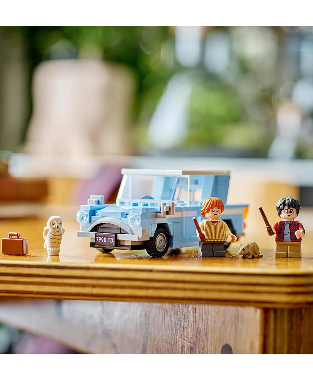 سيارة فورد أنجليا القابلة للبناء – تحتوي على أبواب قابلة للفتح وسقف قابل للإزالة ومقاعد لشخصيتين صغيرتين ومساحة خلفية لهيدويج بالإضافة إلى صندوق خلفي قابل للفتح يتسع للحقيبة والعصي وسكابرز