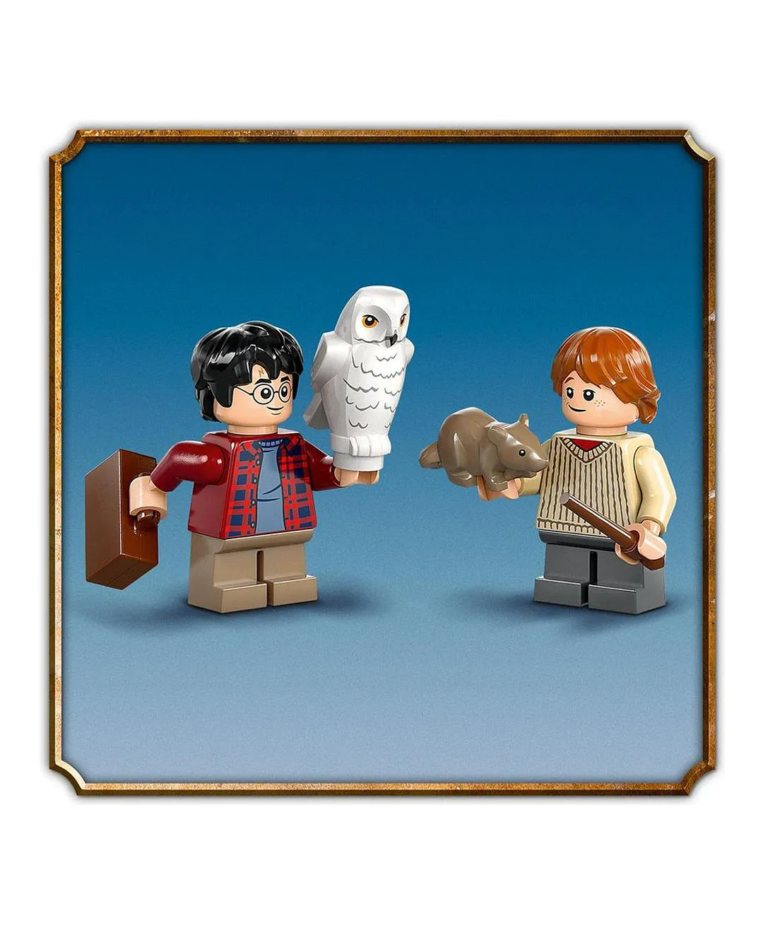 مجموعة لعبة مغامرة تضم 4 شخصيات من ليغو هاري بوتر – شخصيات صغيرة لهاري بوتر ورون ويزلي بالإضافة إلى شخصيات هيدويج وسكابرز وحقيبة سفر وقطعتين من العصا السحرية