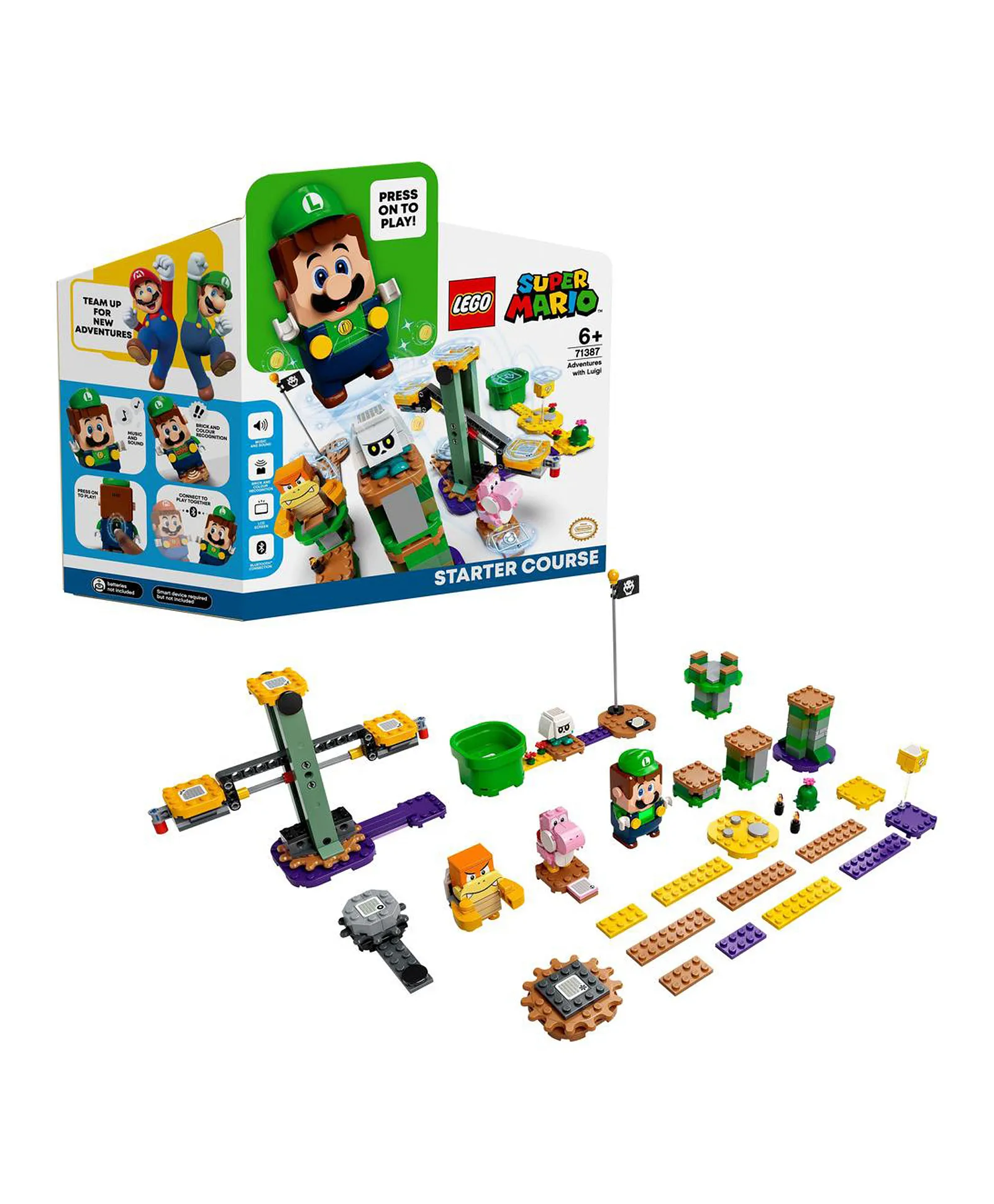 عرّف الأطفال على عالم ليغو سوبر ماريو التفاعلي مع هذه المغامرات مع دورة لويجي للمبتدئين (71387). لعبة هدية رائعة للأطفال الذين يرغبون في تحديد الاتجاه، تتميز بشخصية لويجي من ليغو التي تقدم استجابات معبرة فورية عبر شاشة LCD ومكبر الصوت. يربح اللاعبون عملات معدنية رقمية لمساعدة لويجي من ليغو على إكمال أرجوحة الغزل وتحديات الطيران والتفاعل مع بينك يوشي وهزيمة بوم بوم وبون جومبا. تؤدي المكعبات ذات اللون البني النوجا في هذا البرج الأحيائي أيضًا إلى ردود فعل مختلفة من ليغو لويجي ، وتقدم المكعبات مكافآت إضافية. ابحث عن تعليمات البناء في تطبيق ليغو سوبر ماريو المجاني ، والذي يتضمن أيضًا مصدر إلهام لطرق إعادة بناء المستويات والمزيد. إمكانيات غير محدودة. تقدم مجموعات ألعاب ليغو سوبر ماريو القابلة للجمع طريقة جديدة للعب ، في العالم الحقيقي ، مع شخصيات سوبر ماريو الشهيرة. تتحد دورات المبتدئين ومجموعات التوسعية ، بالإضافة إلى حزم الطاقة ، بطرق لا حدود لها للسماح للمعجبين ببناء مستوياتهم الخاصة.