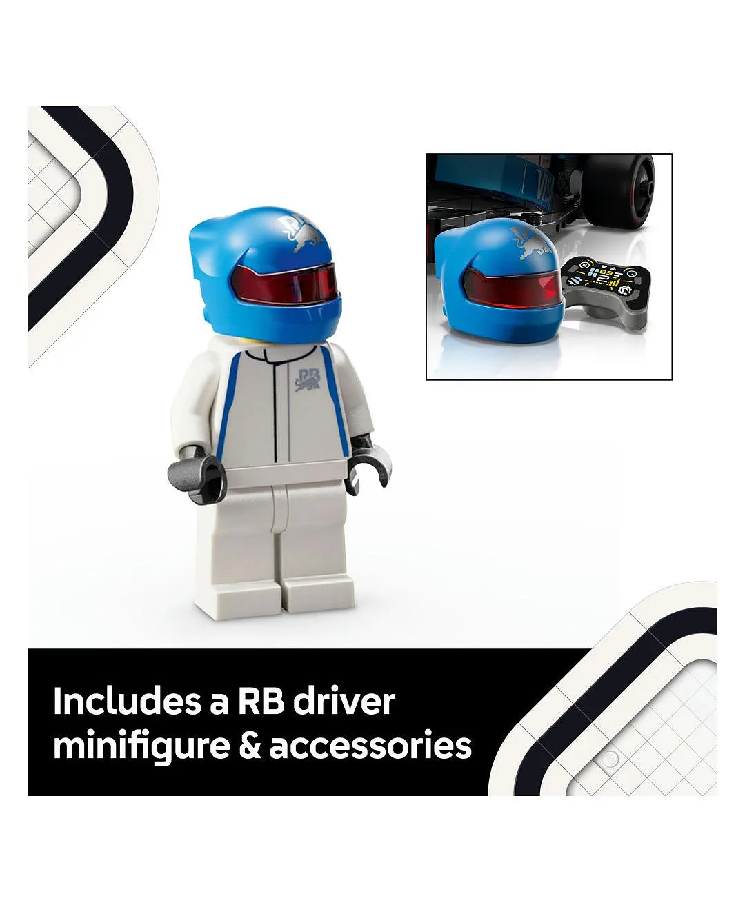 يضم نموذج سيارة F1 قمرة قيادة يمكن فتحها عبر رفع قضيب هالو، وجناح خلفي، ونظام تعليق بذراعين، وملصقات الراعي، والإطارات الخلفية الأعرض المطبوع عليها كلمة Pirelli. وتتوفر سيارة سباق F1 كذلك مع شخصية صغيرة لسائق يرتدي زيّ RB وخوذة مجنحة لوضعه داخل قمرة القيادة. وفور اكتمال البناء، سيبدو نموذج سيارة F1 رائعًا عند العرض.