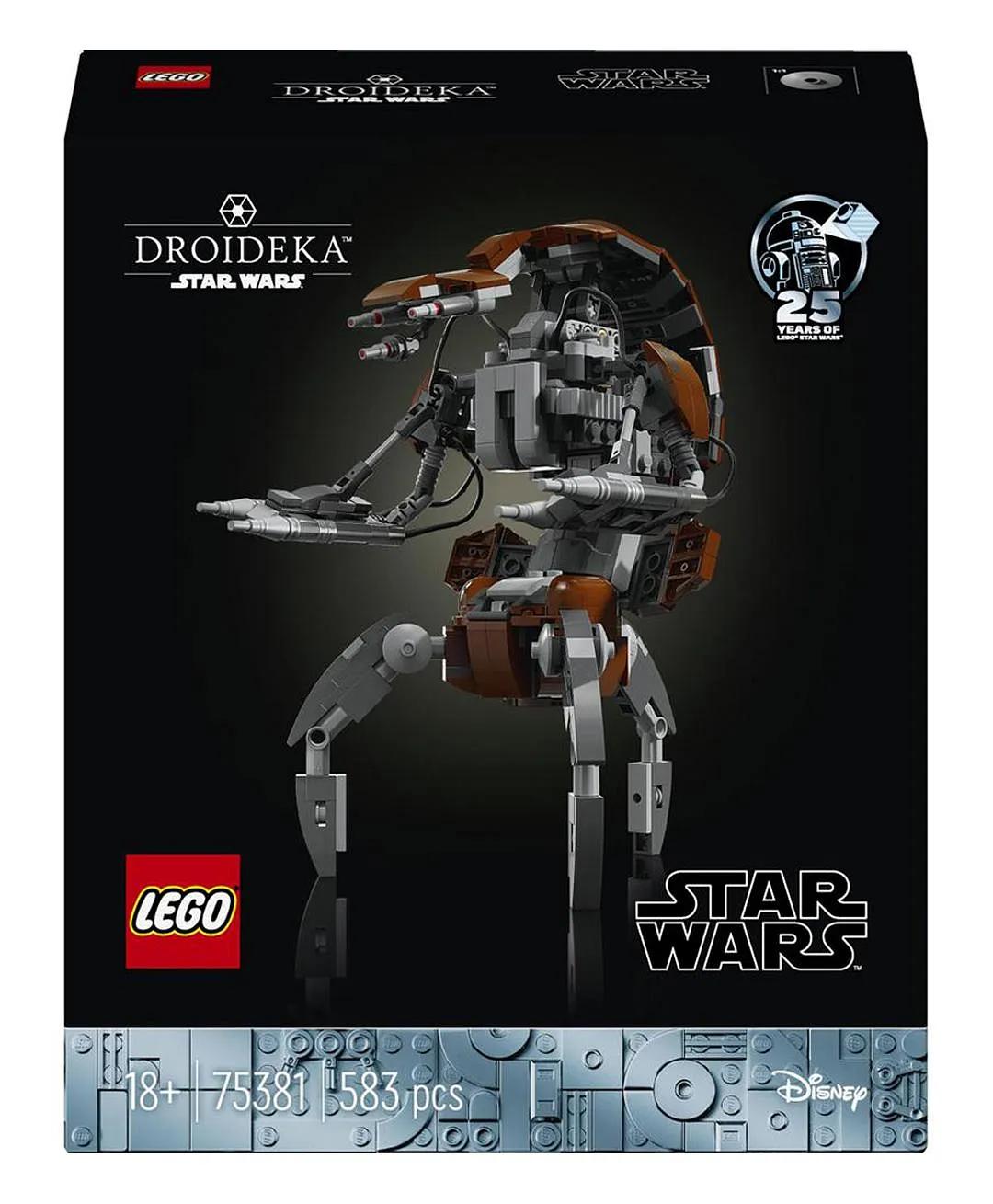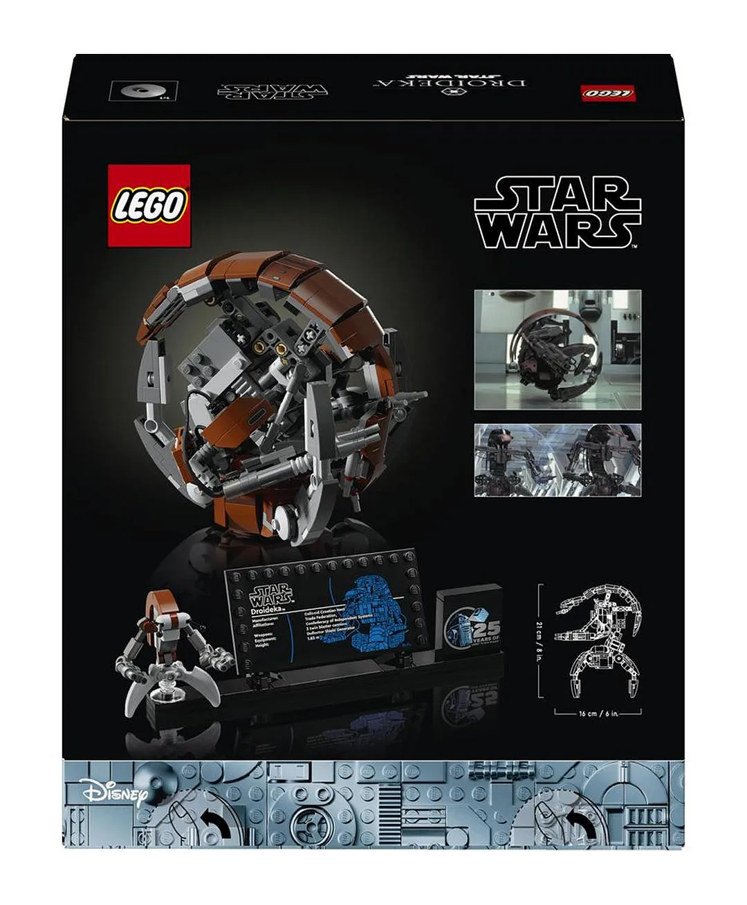 قطعة مركزية للذكرى السنوية 25 – تشتمل هذه المجموعة الفريدة على منصة مع مساحة لشخصية الروبوت المدمّر الصغيرة من ®LEGO ولوحة معلومات حول الروبوت المدمّر ومكعب الذكرى السنوية 25 لـ ™LEGO Star Wars.