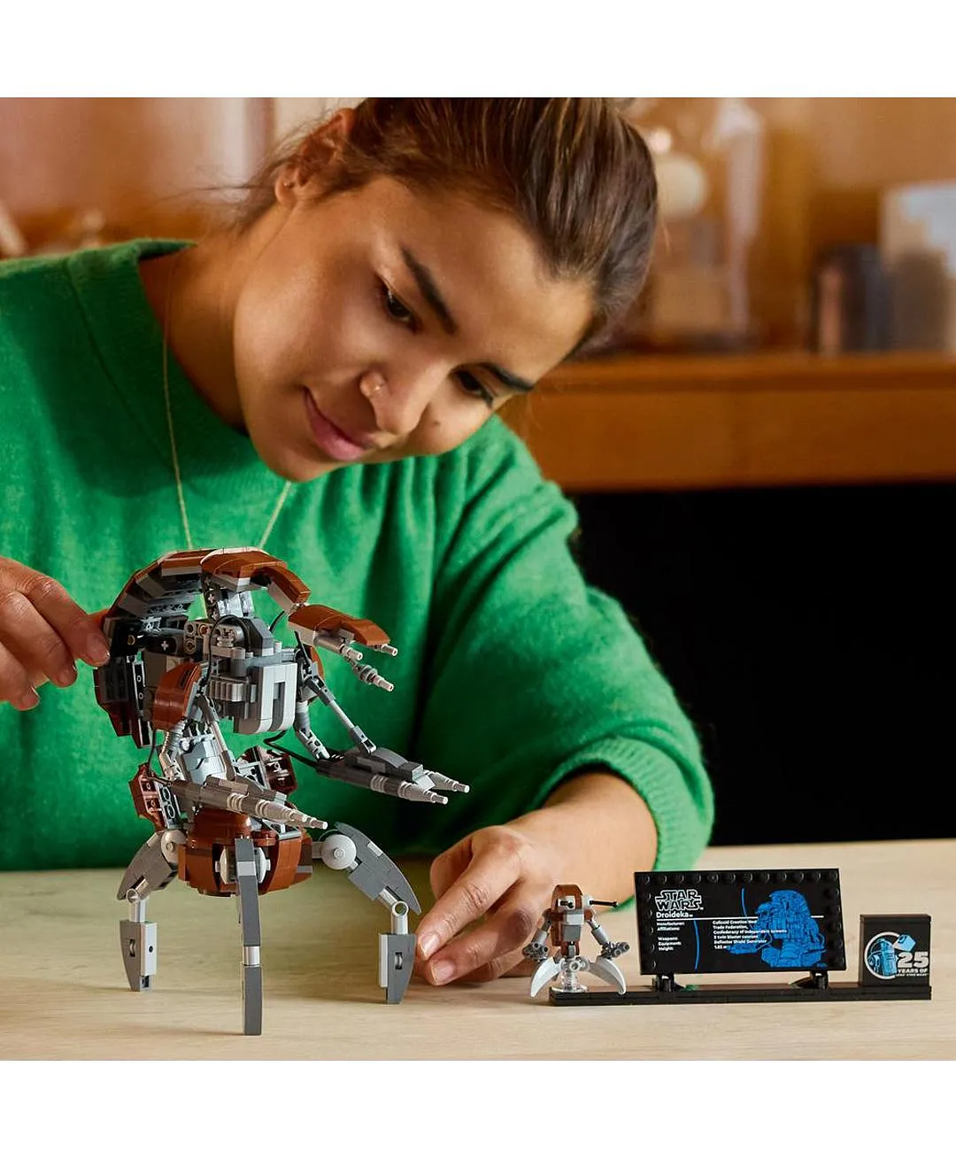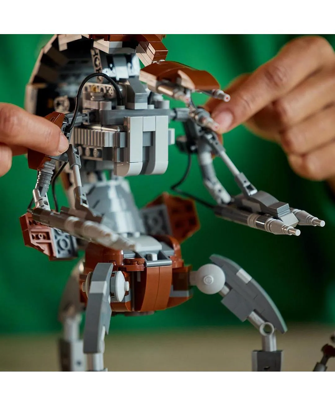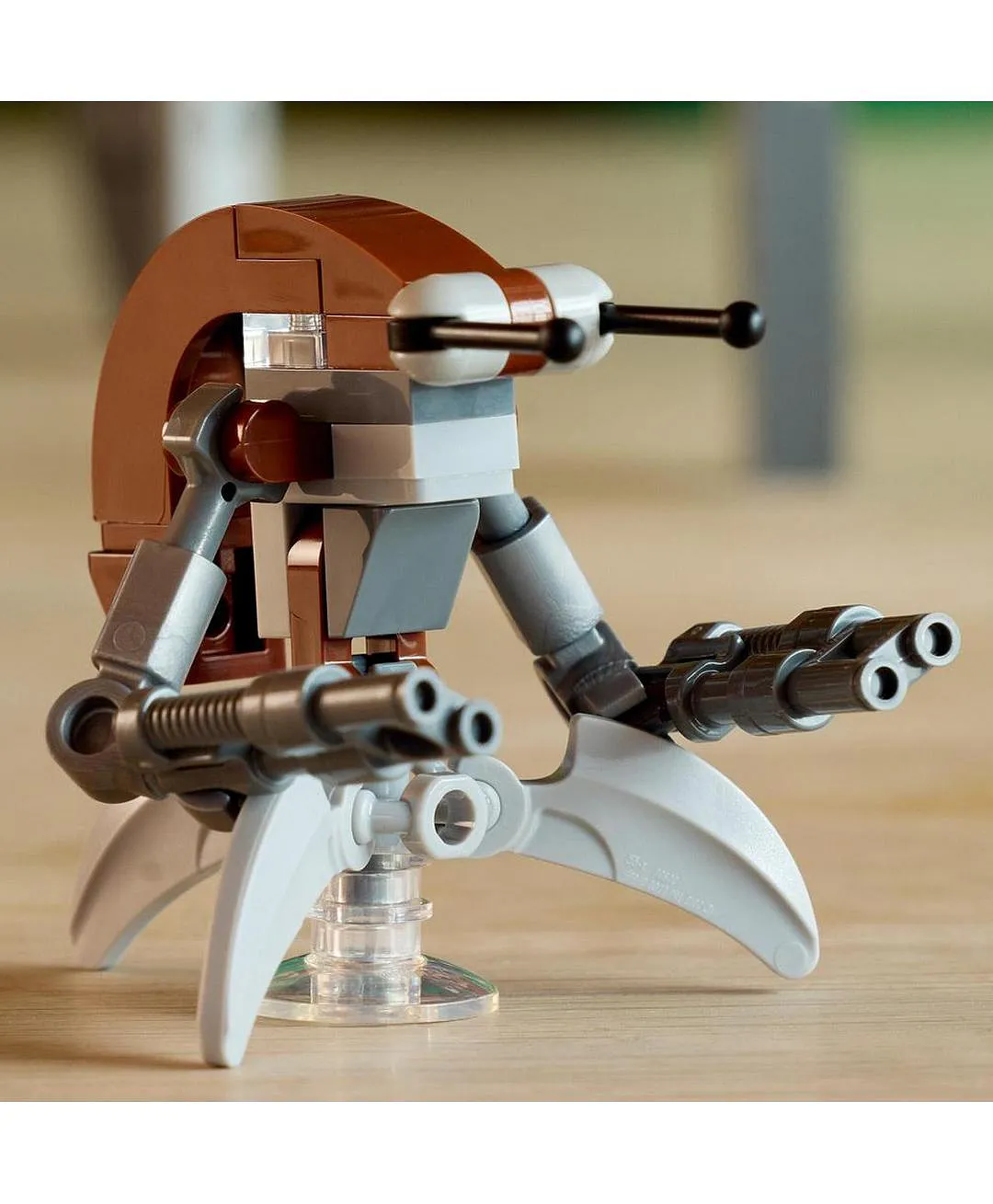 شخصية الروبوت المدمّر القابلة للبناء من ®LEGO – ابتكروا عرضًا ممتعًا باستخدام نموذج مبني من المكعبات قابل للتجميع لروبوت مدمّر، كما ظهر في حرب النجوم: تهديد الطائرة الشبح وحرب النجوم: حروب المستنسخين.