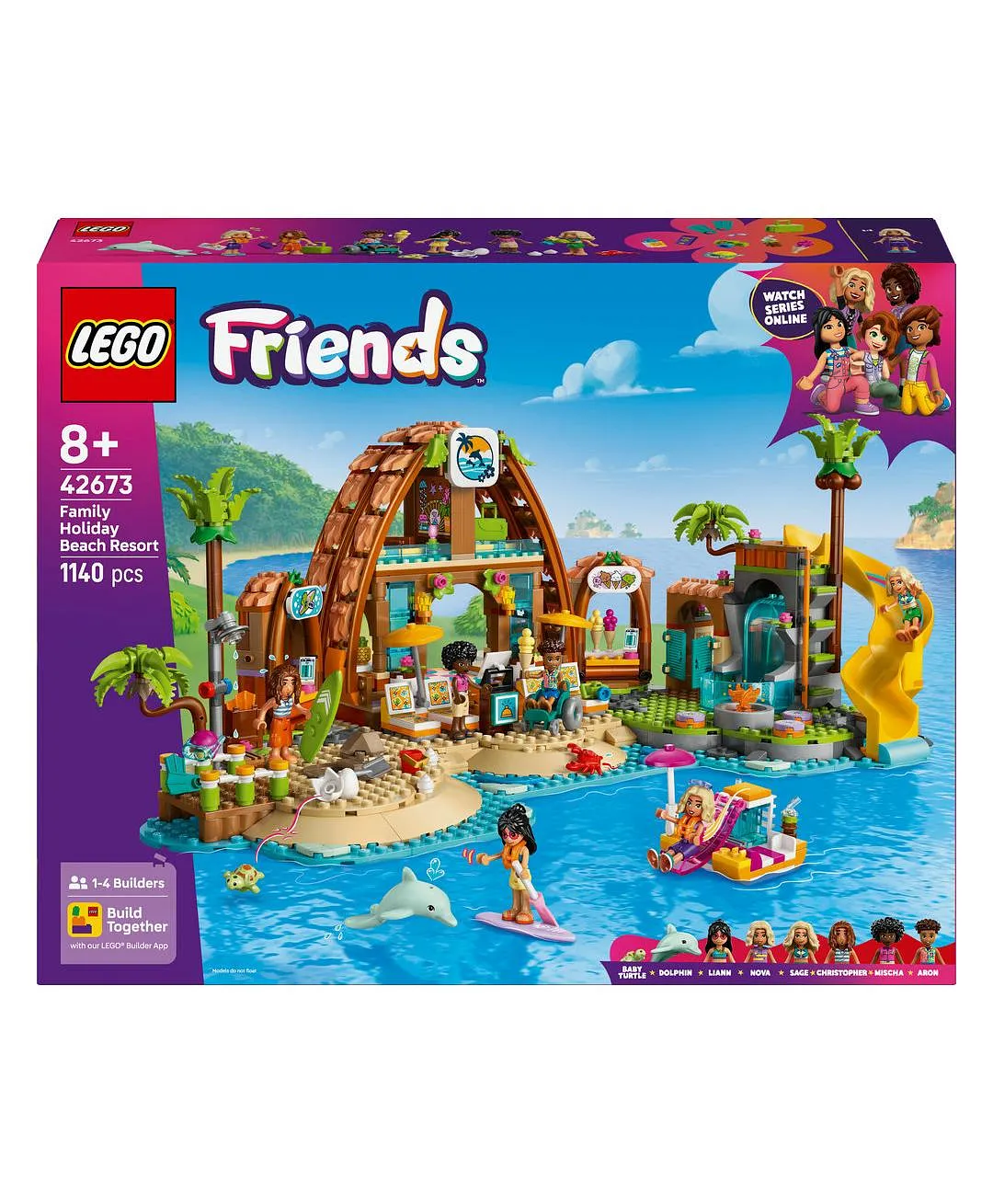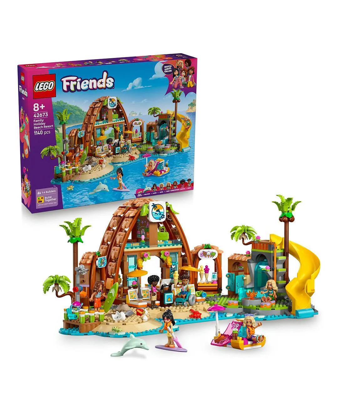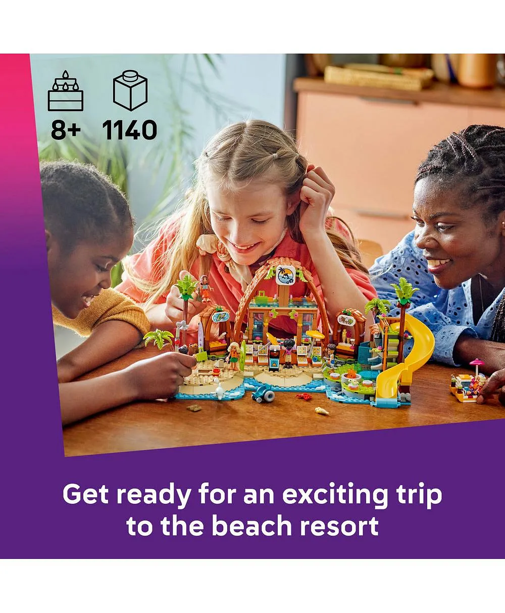 مجموعة بناء لعبة منتجع الشاطئ للإجازة العائلية من ليغو® فريندز، مجموعة لعب السفر مع حيوانات بحرية 42673 – 1140 قطعة