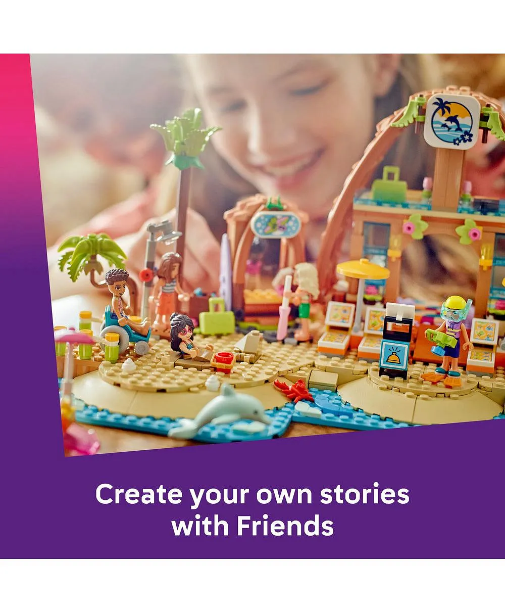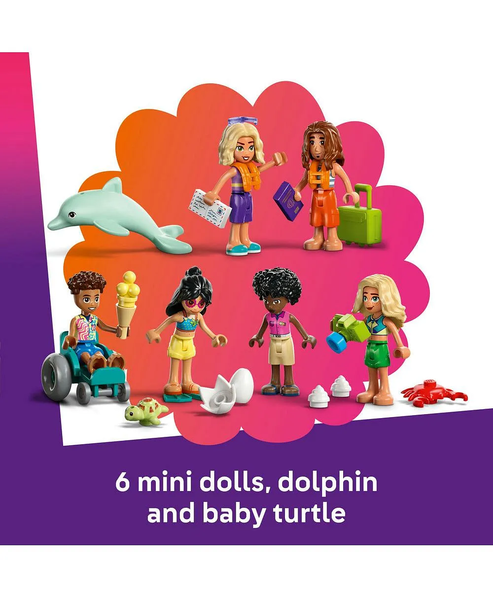 مجموعة بناء لعبة منتجع الشاطئ للإجازة العائلية من ليغو® فريندز، مجموعة لعب السفر مع حيوانات بحرية 42673 - 1140 قطعة