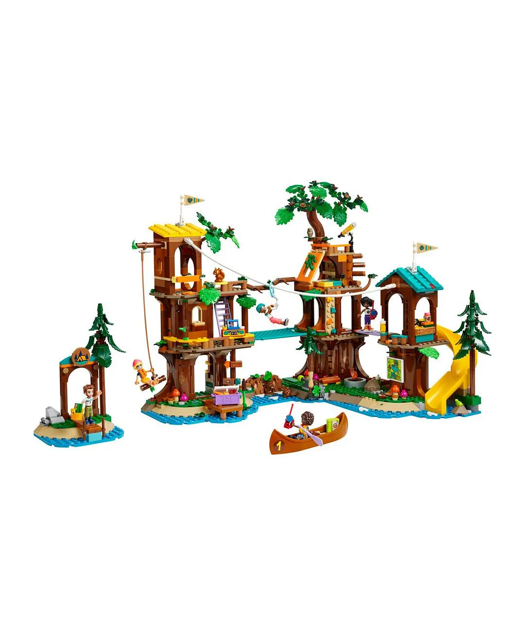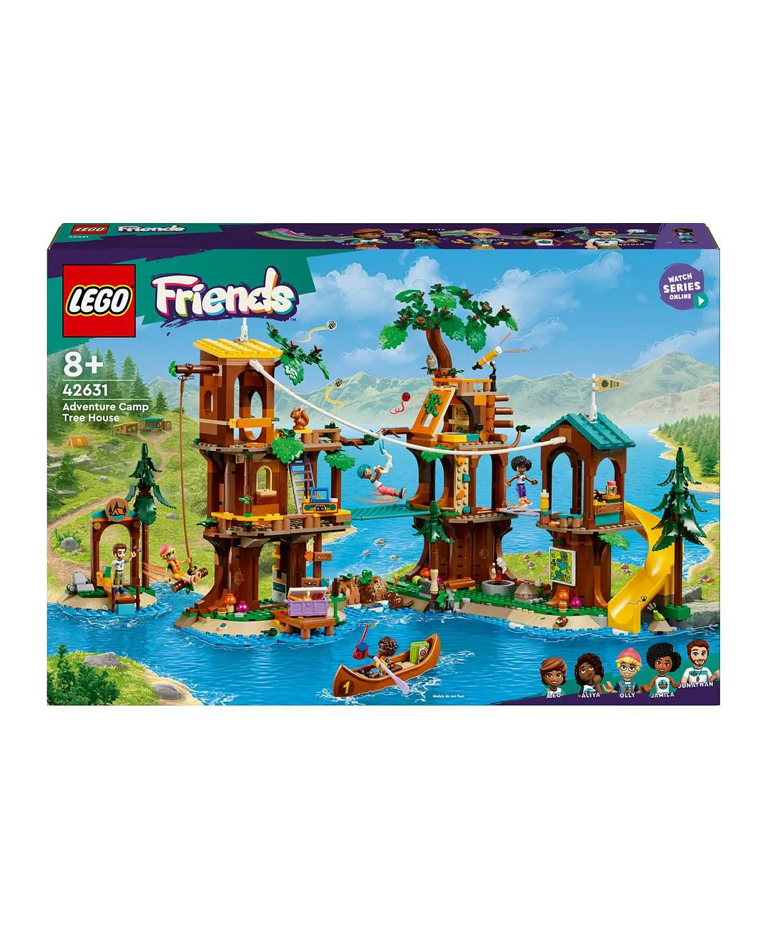 مجموعة لعب التخييم للأطفال – تتوفر لعبة بيت الشجرة في مخيّم المغامرات من LEGO® Friends والمصمّمة للصبيان والبنات بعمر 8 سنوات أو أكثر مع 5 دمى صغيرة والكثير من شخصيات الحيوانات وزورق وملحقات الرياضات اللعبة