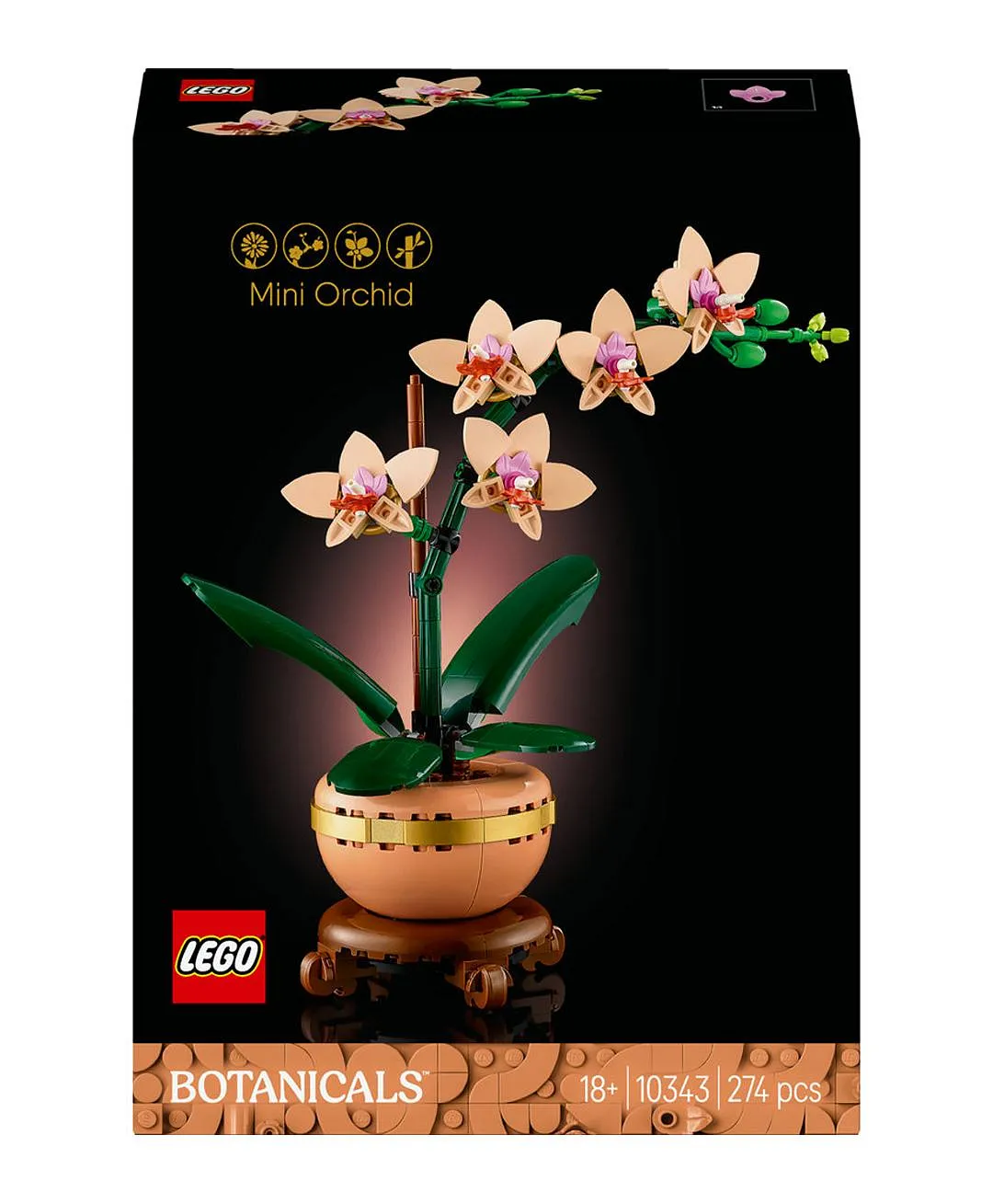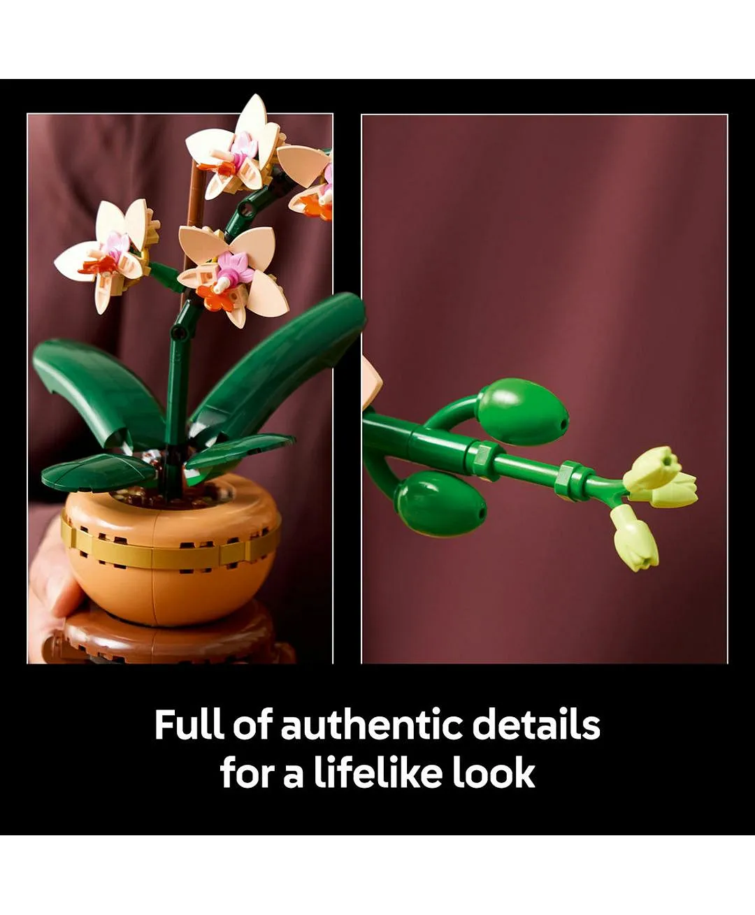 هدية نبات الأوركيد الصغير من ليغو® Botanicals، مجموعة بناء ديكور منزلي للبالغين 10343 – 274 قطعة