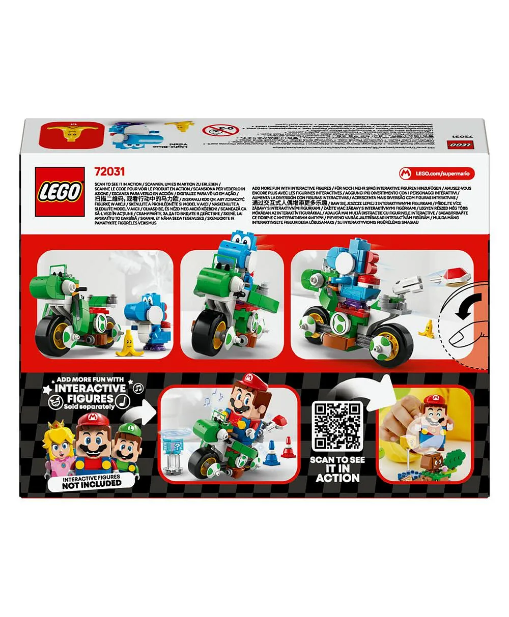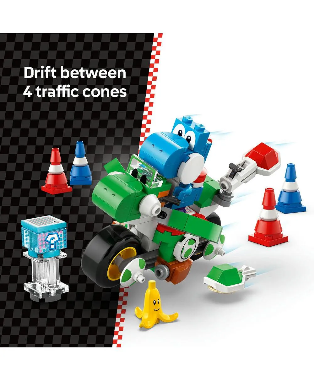 اللعب التفاعلي – اركبوا Yoshi Bike مع شخصية ماريو™ أو لويجي™ أو بيتش™ من ليغو® (الشخصيات غير مضمّنة) لتشغيل المؤثرات الصوتية/البصرية في Mario Kart™ والحصول على عناصر رقمية من Item Box