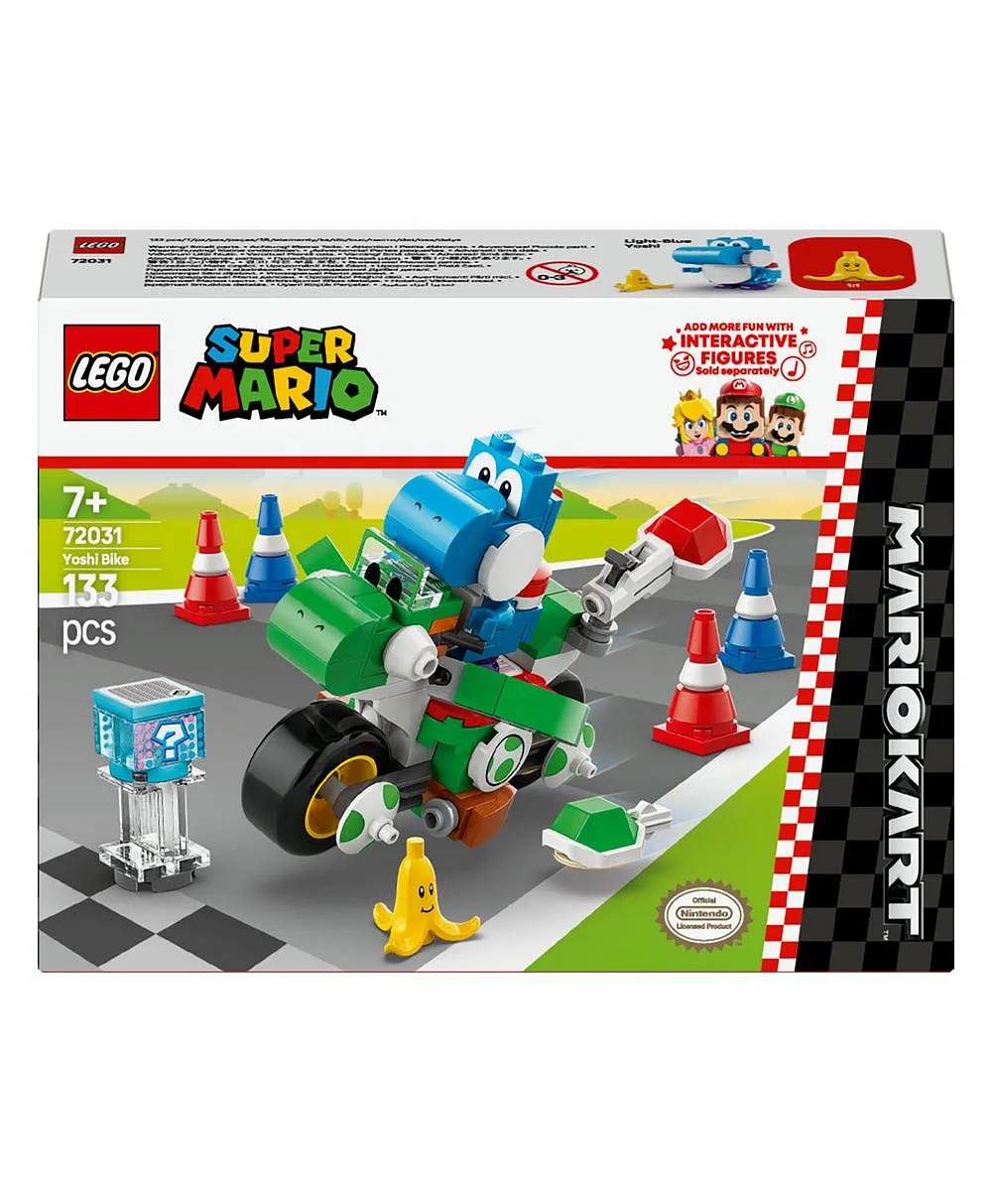 استعدّوا لحركات القيادة والانسياب المشوّقة مع مجموعة لعب المغامرة القابلة للتجميع هذه LEGO® Super Mario™: Mario Kart™ – Yoshi Bike المصمّمة للأطفال (72031). فكرة هدية مشوّقة من Nintendo® للصبيان والبنات وهواة الألعاب الإلكترونية بعمر 7 سنوات أو أكثر، وتتميز المجموعة بنموذج مبني من المكعبات لشخصية Yoshi Bike ولأول مرة في مجموعات LEGO Super Mario، تظهر شخصية لعبة Light-Blue Yoshi. ساعدوا Light-Blue Yoshi على قيادة الدراجة بين 4 من أقماع المرور وأطلقوا الأصداف من الدراجة وانعطفوا حول Banana.